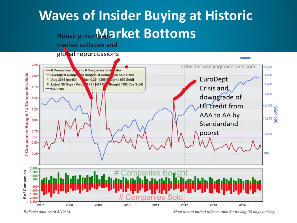 How will you know when it’s safe to go back in the market.  Insiders buying will point the way.  Explosions of insider buying have signaled the end of every bear market.