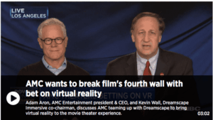 AMC wants to break film’s fourth wall with bet on virtual reality 53 Mins AgoAdam Aron, AMC Entertainment president & CEO, and Kevin Wall, Dreamscape Immersive co-chairman, discusses AMC teaming up with Dreamscape to bring virtual reality to the movie theater experience.