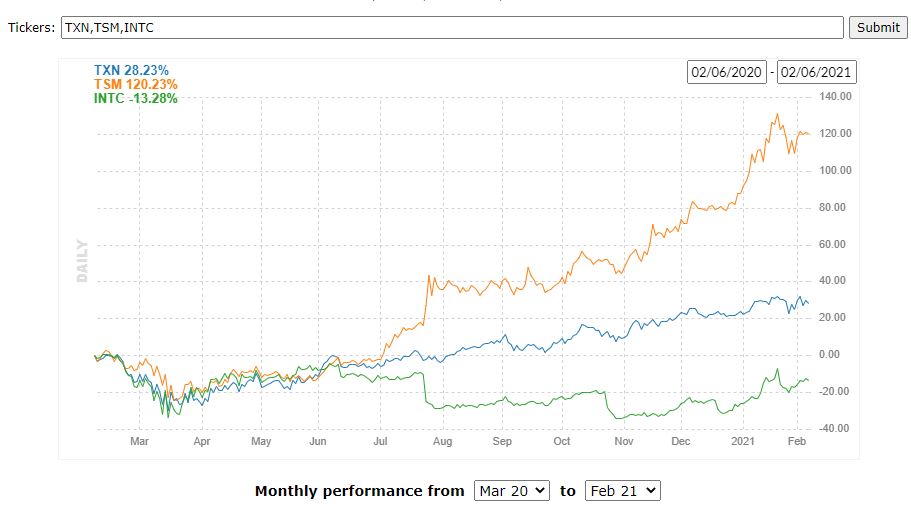 Common consensus used to be that being a foundry was a low margin not so sexy business as being the actual inventor and manufacturer of the technology. Based on the historic stock price comparison of INTC, TXN, and TSM that was a very expensive miscalculation. It will only take a whiff of war or threats against Taiwan from the mainland to create a dramatic reversal of the chart below. Just keep in mind contrarian positions take more time to fulfill themselves and are often painful going against the herd. It’s much easier to fall in with the momentum crowd but when the change in thinking happens, the reward is enormous. Even TSM is looking to build U.S. chip manufacturing capability with a plant underway in Arizona.