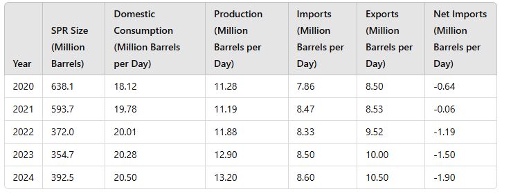 • SPR Size: Represents the year-end inventory levels of the U.S. Strategic Petroleum Reserve. When Trump left office there were~638 Millions barrel of oil in the reserve. Based on domestic consumption then, that was about 35 days of gas at the pump. Actuall a lot less since not all petroleum is turned into gas. Today it is about 19 days worth of petroleum.