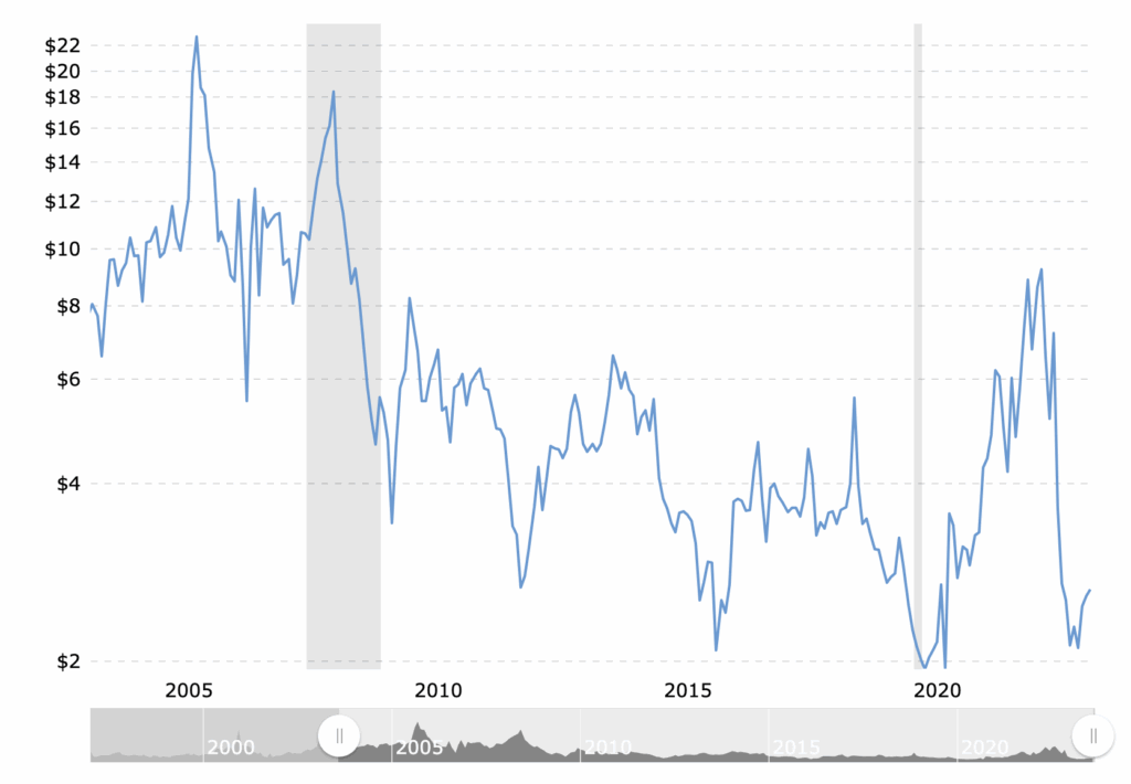 Natural Gas is at a 24-year low in price when you take out the aberration of the 2020 Pandemic.