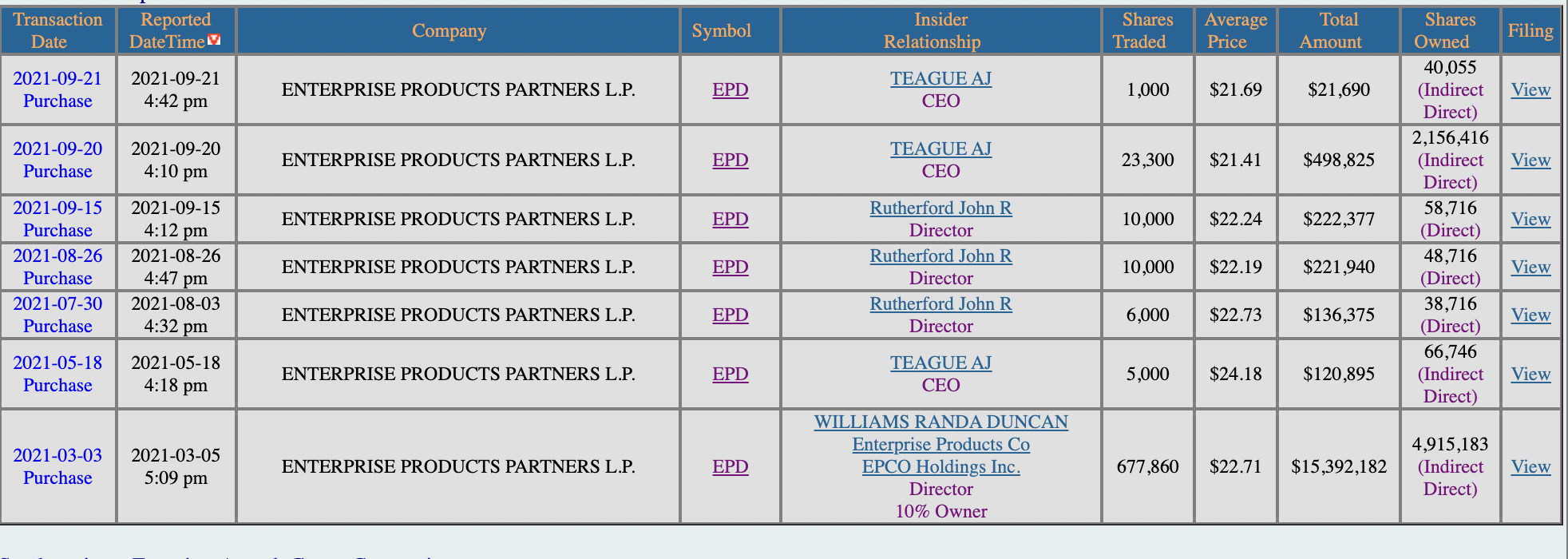 Transaction Date: 2021-09-17 Shares Bought: 5,000 Average Price Paid: $44.90 Cost: $224,517