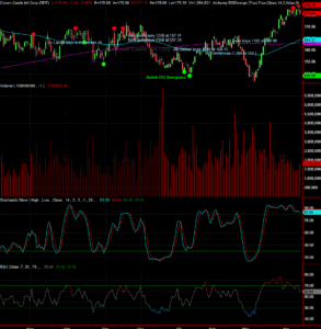 One of the tools I regularly use to preserve gains and especially long-term capital gains is writing covered calls on positions that I think can do down in the near term. Technical analysis is a great tool to predict short-term price movements. Take the example of Crown Castle Internationa. Crown Castle is a real estate investment trust and provider of shared communications infrastructure in the United States. Its network includes over 40,000 cell towers and nearly 80,000 route miles of fiber supporting small cells and fiber solutions. Wikipedia