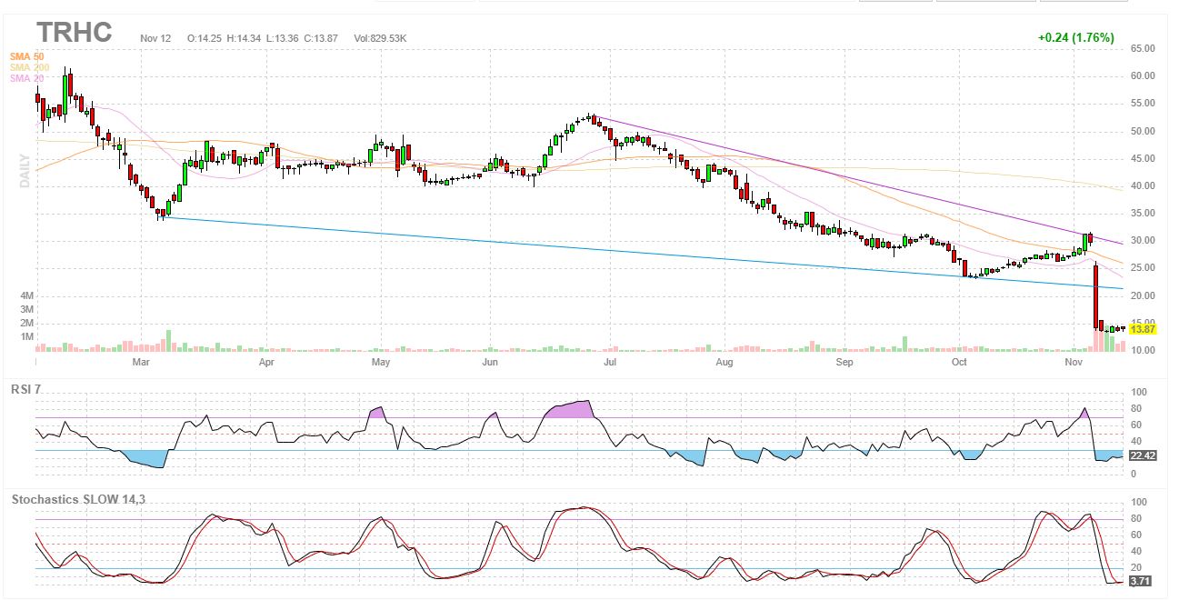 Biohaven fell 16% on Q3 earnings where the company earned an adjusted EPS (#1.91) versus the consensus ($2.40) on revenues of $135.74M versus $128.4M. They inked a deal with Pfizer to sell and distribute Nurtec outside the U.S. Why that merited a steep stock sell-off is a mystery to me and apparently to director John Childs who made his 4th buy of the year at ever-increasing prices. Childs is averaging up not down and this is very bullish insider buying. Patient investors would be wise to nibble here too.